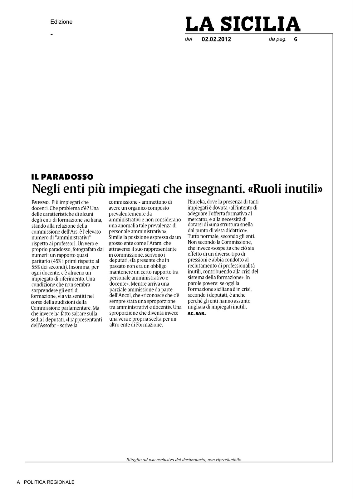 RASSEGNA STAMPA 02/02/2012